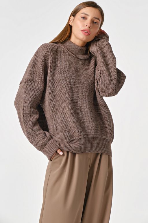 Джемпер вязаный оверсайз с высоким горлом ореховый