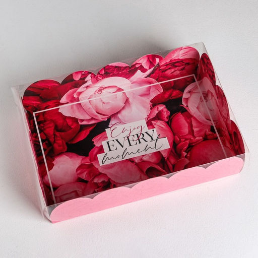 Цена за 5 шт. Коробка для печенья, кондитерская упаковка с пластиковой крышкой, Enjoy every moment, 20?30?8 см