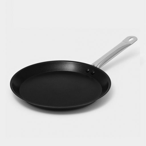 Блинная сковорода имеет низкий борт и удобную ручку, благодаря чему легко переворачивать и снимать блины. Утолщенное дно обеспечивает особые свойства: блин равномерно пропекается по всей толщине и красиво румянится с обеих сторон. Благодаря антипригарному покрытию блины всегда легко снимаются со сковороды и не пригорают даже при выпекании без использования масла.