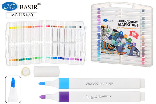 Набор маркеров акриловых 60цв., 2-4мм (MC-7151-60) на водной основе, укрывистые, трехгранный корпус