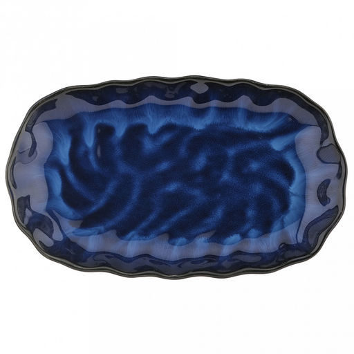 "Тихий океан" Блюдо керамическое 310х185х40мм, 850мл, асимметричная форма, синий (Китай)