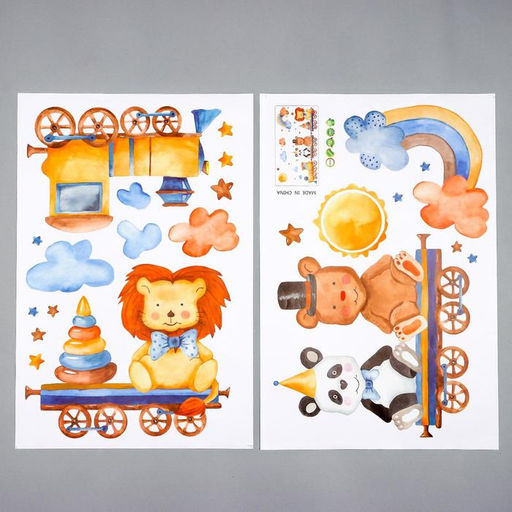 • Наклейка пластик интерьерная цветная "Зверушки на поезде" 45х60 см набор 2 листа