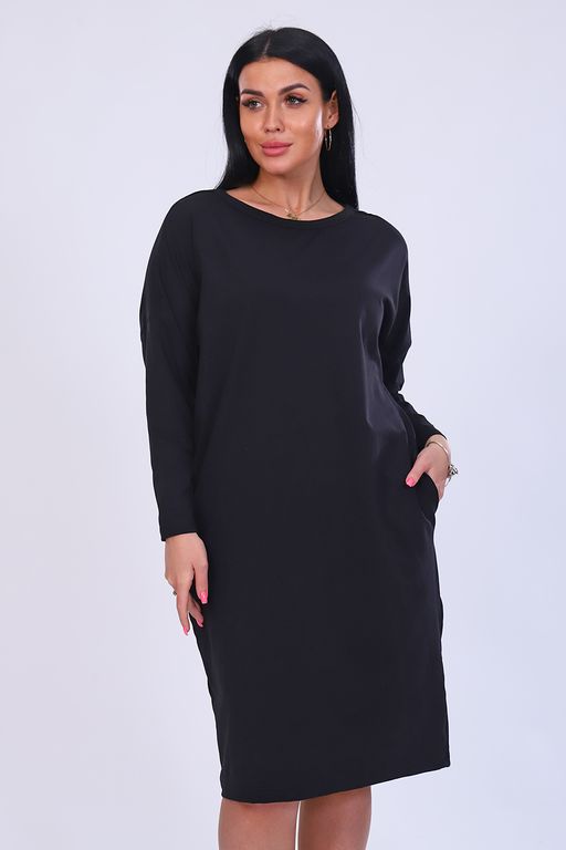 Платье женское свободного кроя, с карманами, рукава прилегающие, горло обтачено.