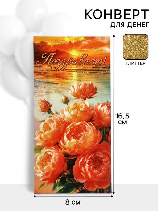 Цена за 10 шт. Конверт для денег Поздравляю!15, глиттер, 16.5?8 см