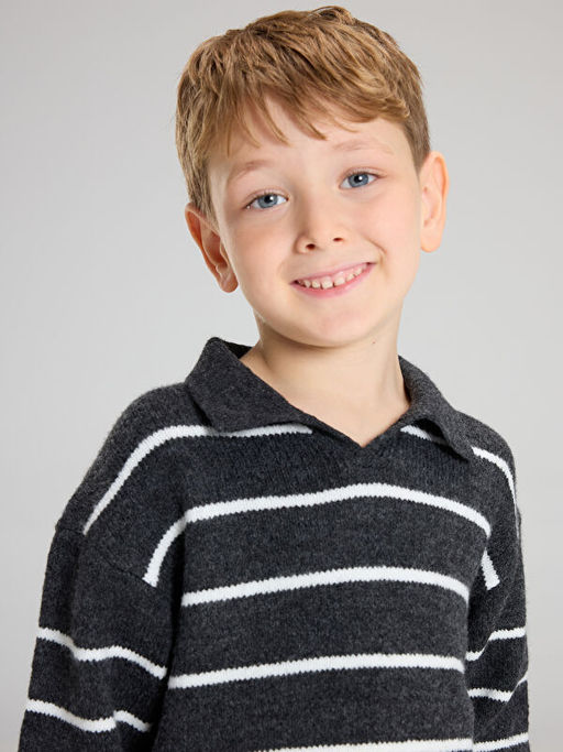 Bisiklet Yaka ?izgili Erkek Bebek Triko Kazak