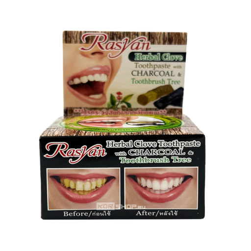 • Травяная зубная паста Райсан с гвоздикой, углем и зубощеточным деревом Rasyan Herbal Clove Toothpaste with Charcoal & Toothbrush Tree, Таиланд, 25 г Акция