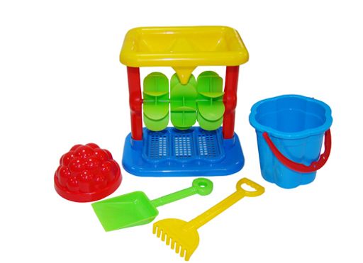 • Набор для песка №347: мельница, ведро, лопатка, грабельки, формочка (35752) в сеточке, Полесье
