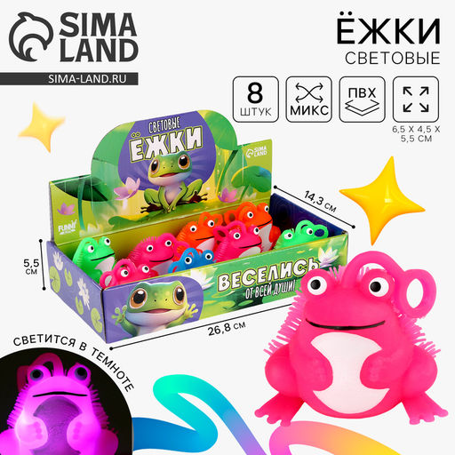 • Цена за 8 шт. Мяч детский резиновый ёжка световой «Лягушка», цвета МИКС , в шоубоксе