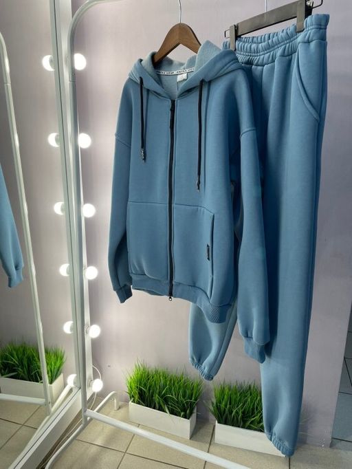 Костюм состоит из брюк и толстовки с капюшоном. Сшито из натурального трикотажа, имеют: полуприлегающий покрой, удобную посадку, вместительные карманы и капюшон, молнию. Брюки на резинке. отличная посадка.