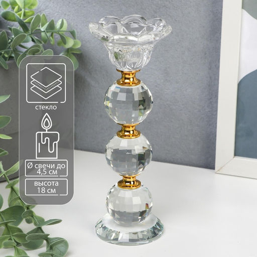 Стеклянный подсвечник на 1 свечу Цветочек с тремя шарами, 18?7?7 см