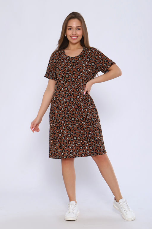 Платье полуприлегающего силуэта с короткими рукавами и отворотными манжетами. Карманы в боковых швах.