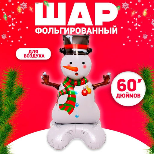 Воздушный шар фольгированный 60" «Снеговик», на подставке