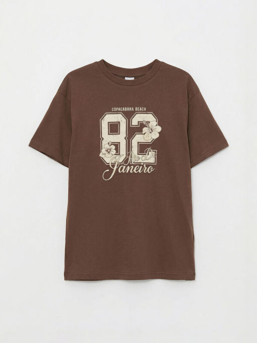 Bisiklet Yaka Bask?l? K?z ?ocuk Ti??rt
