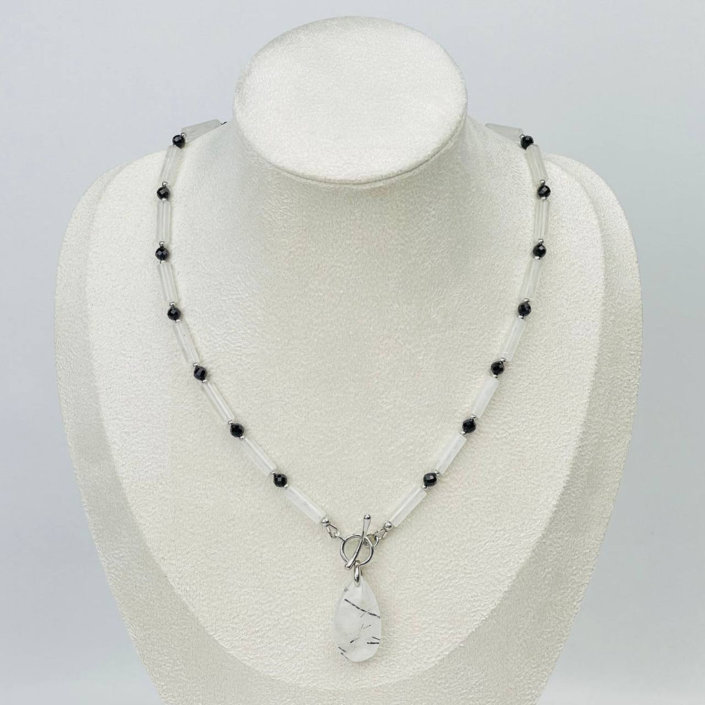 Колье из Кварца с Турмалином и Шпинели 44 см
