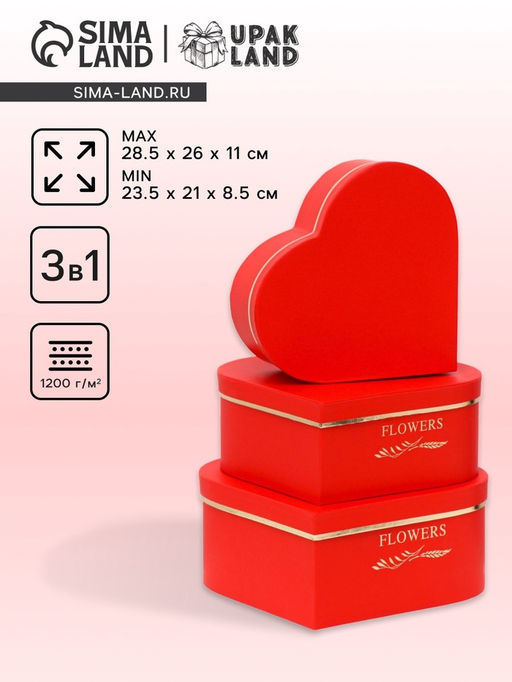 Практичность солидной упаковки: Набор из трех коробок-сердец избавляет от необходимости подбирать упаковку отдельно для каждого подарка. Рельефная поверхность создает эффект дорогой упаковки, а увеличенные габариты вмещают объемные презенты. Такой подход экономит время и добавляет значимости подарку.