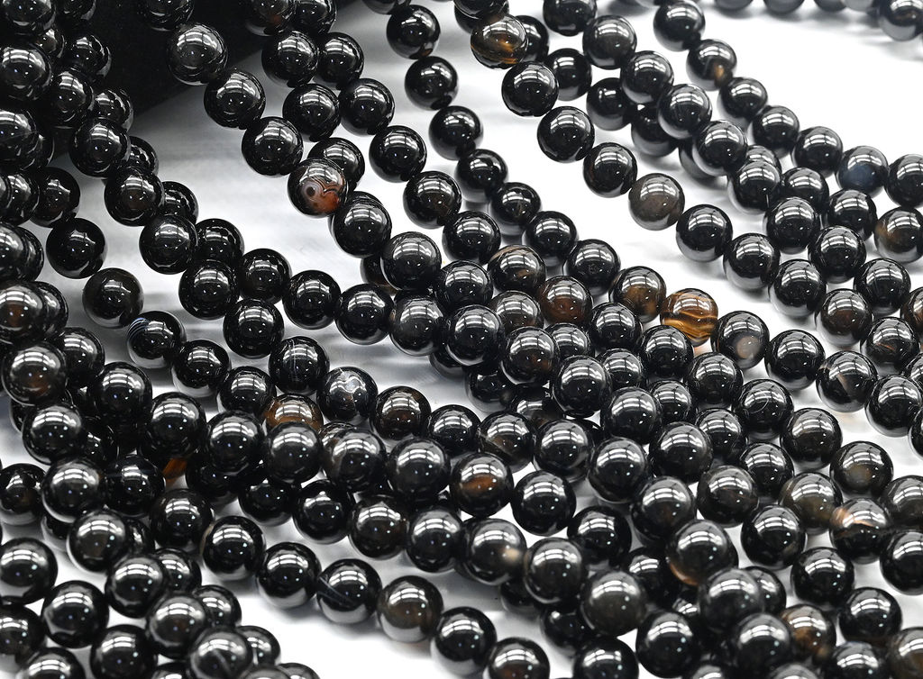 • Бусины из агата черного шарик 8мм, 38см, 48 бусин Радуга камня