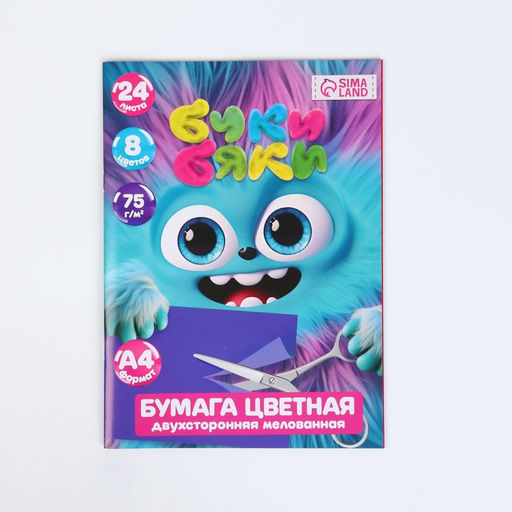 • Бумага цветная двусторонняя А4, 24 листа, 8 цветов, мелованная «БукиБяки»