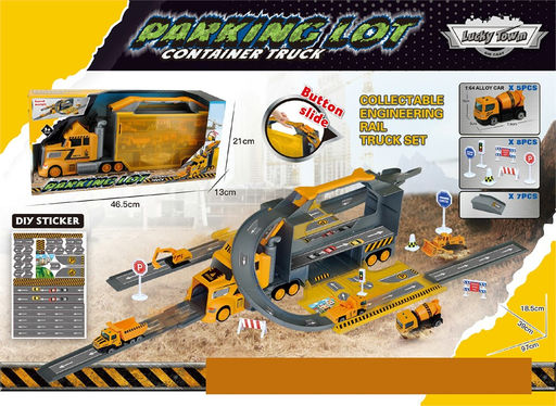 • Игр. набор "Парковка. Стройка" (879-110) в собр. виде 97*39*18,5см +5 мет. моделей 1:64 и 8 дор. знаков, собирается в автовоз 45*19см, в коробке