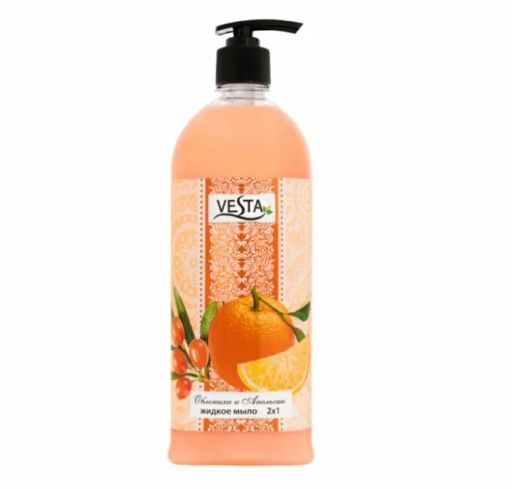 VESTA жидк.мыло 1л с дозатором "2х1 Очищение и Уход" Облепиха и апельсин