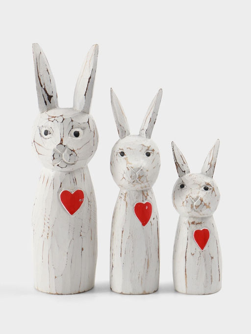 • Набор сувенирный Зайцы с сердечком, h=25 см, h=20 см, h=15 см, дерево, белый