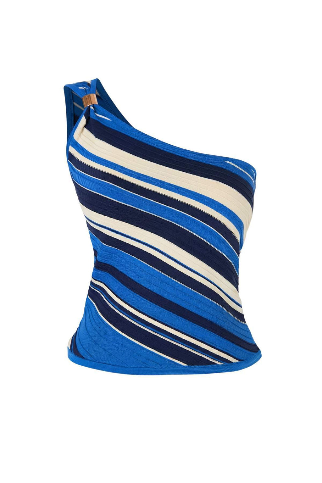 Mavi Asimetrik Yaka Fitted Renk Bloklu Crop Triko Ince Bluz TWOSS26BZ00301