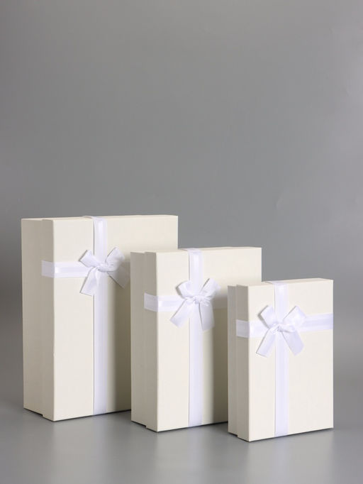 • Набор подарочных коробок 3 в 1, прямоугольные с бантом, молочный, 33.5×25×11.5; 29×21×9; 24.5×17×6.5 см
