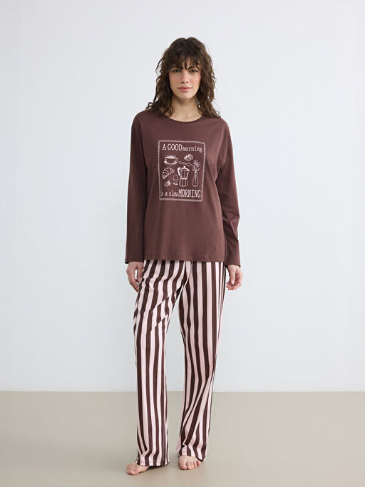 Bisiklet Yaka Bask?l? Kad?n Pijama Tak?m?