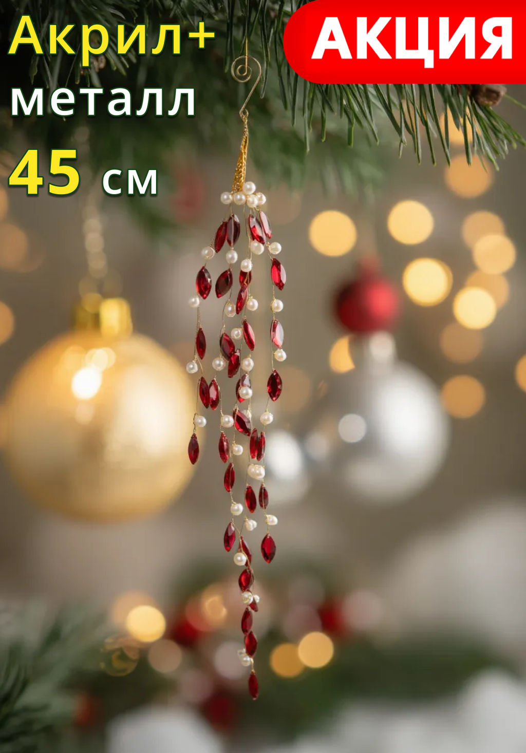 Украшение декоративное, 45 см, подвесное, акрил/металл, красно-белое, Жемчуг, New year