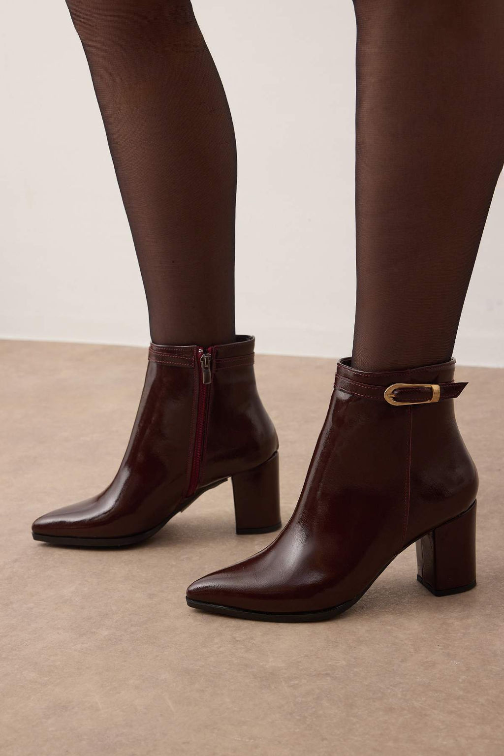 • Bordo Toka Detayl? Sivri Burun Blok Topuklu Bilekte Kad?n Bot TAKAW26BO00059