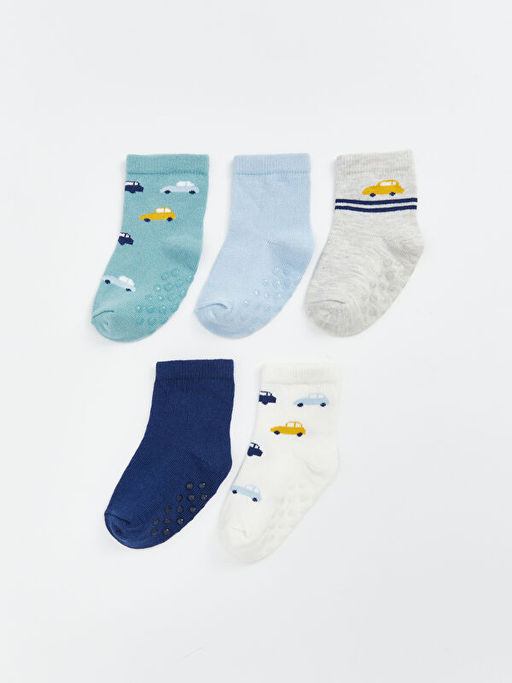 Bask?l? Erkek Bebek Soket ?orap 5li