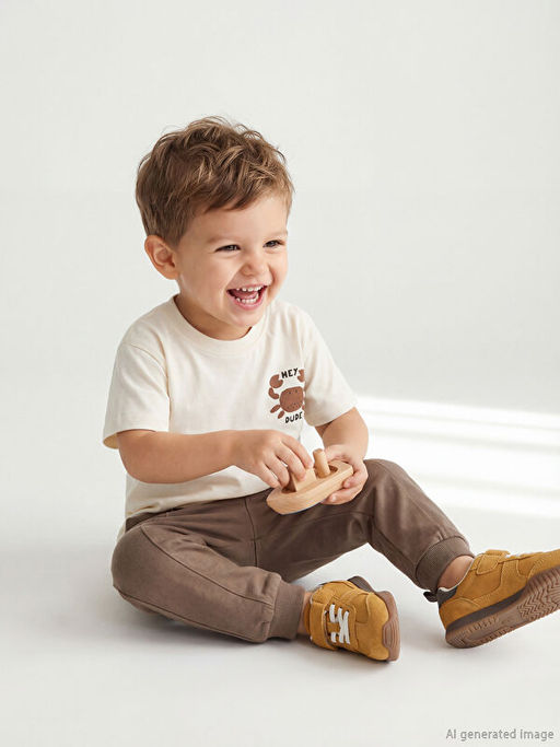• Yenge? Bask?l? Erkek Bebek Ti??rt ve E?ofman Alt?