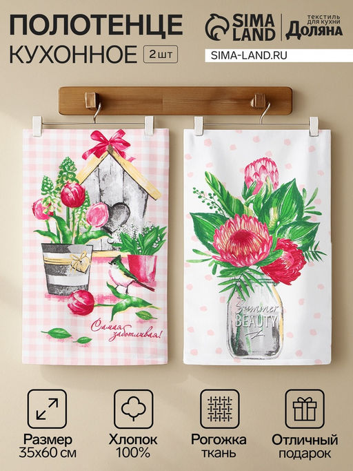 • Набор кухонных полотенец Доляна Самой заботливой, 35?60 см-2 шт., 100% хл