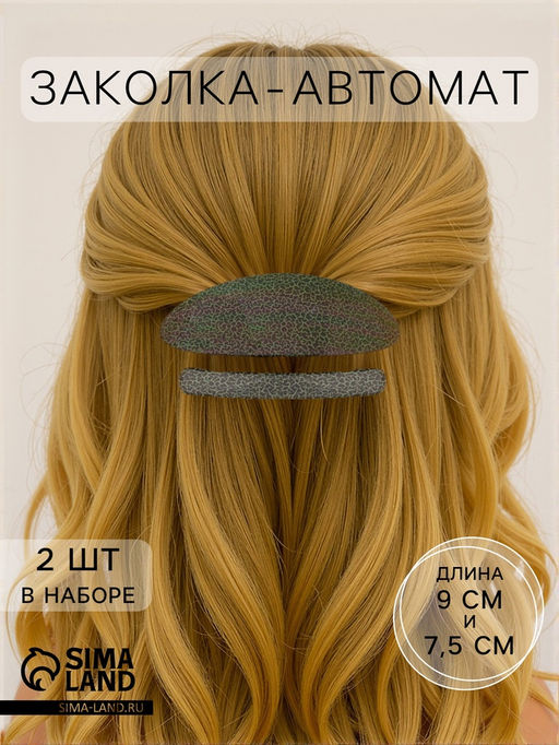 • Цена за 6 шт. Заколка - автомат для волос «Чёрная лава», набор 2 шт.: 9 см, 7.5 см