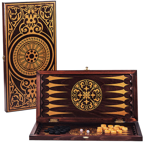 Нарды средние венге, рисунок золото "Круговой орнамент" (480*240*40)