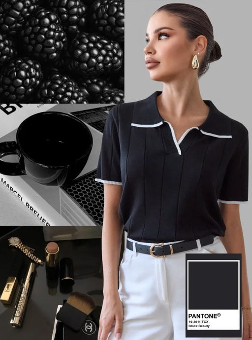 • K13360 Джемпер-поло (вязаный трикотаж) ЧЕРНЫЙ