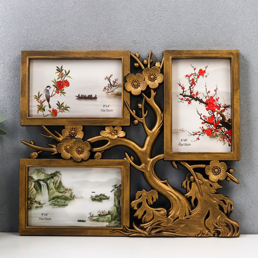 Фоторамка - коллаж на 3 фото 10?15 см Вишнёвый сад, т. золото, 32?27 см