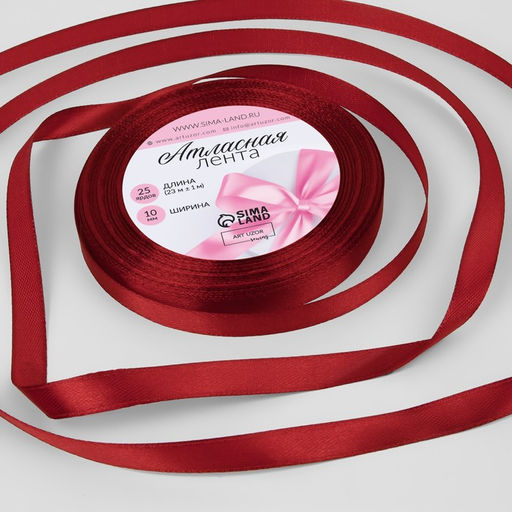 • Цена за 5 шт. Лента атласная, 10 мм, 23±1 м, бордовая №37