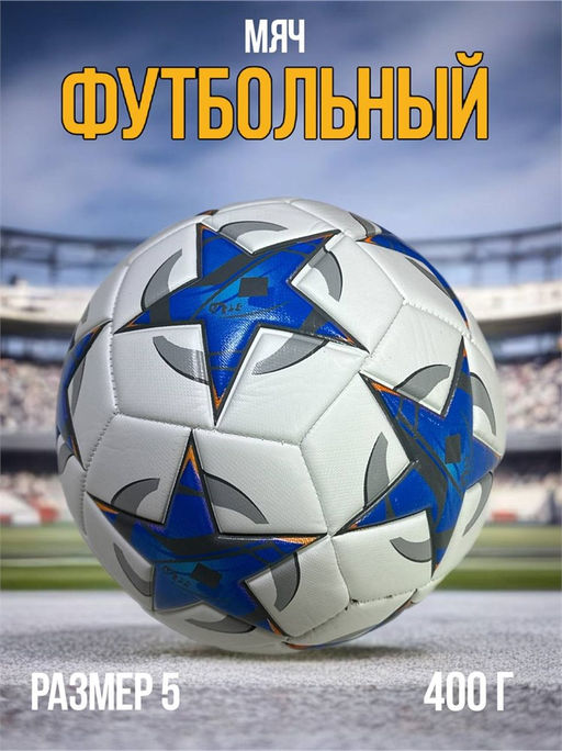 • Мяч футбольный, размер 5, 400гр (RKJ-6236) Пакистан, белый с синими звездами