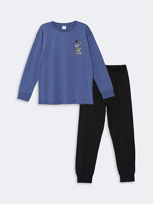 Bask?l? Erkek ?ocuk Pijama Tak?m?