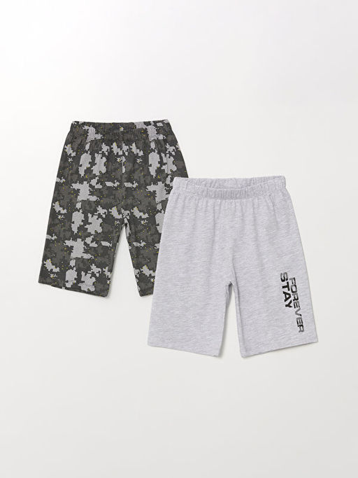 Beli Lastikli Bask?l? Erkek ?ocuk Pijama ?ort 2li