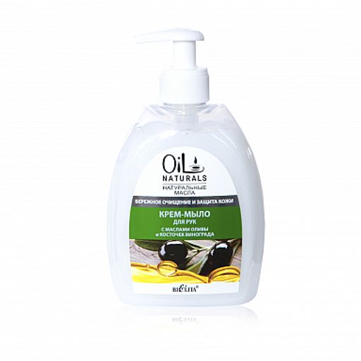 Белита OIL Naturals Крем-мыло для рук с маслами Оливы и косточек виногр.Береж.очищ.и защ., 400мл