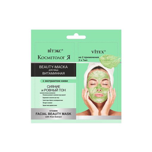 Витэкс КОСМЕТОЛОГиЯ Витаминная BEAUTY-МАСКА для лица с экстрактом киви, 2 х 7 мл., саше