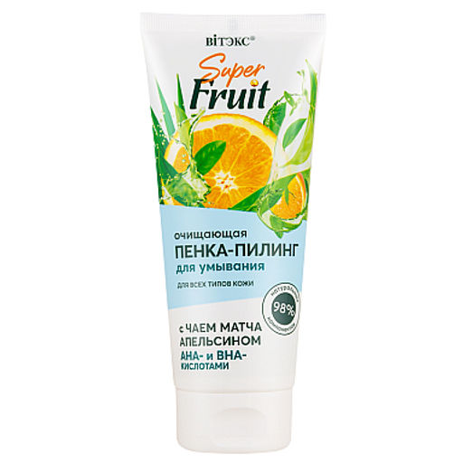 Витэкс Super FRUIT Очищающая Пенка-пилинг д/умывания с чаем матча,апельсином, АНА и ВНА кислотами, 200 мл