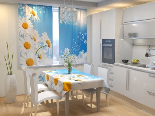 Фотошторы для кухни Ромашковая свежесть Шторы (Габардин)+Скатерть (145*145)