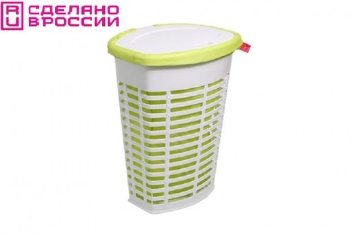 PALM Корзина для белья с крышкой (белый) и внутренним чехлом (салатовый). Размер: 47х36х60 см.