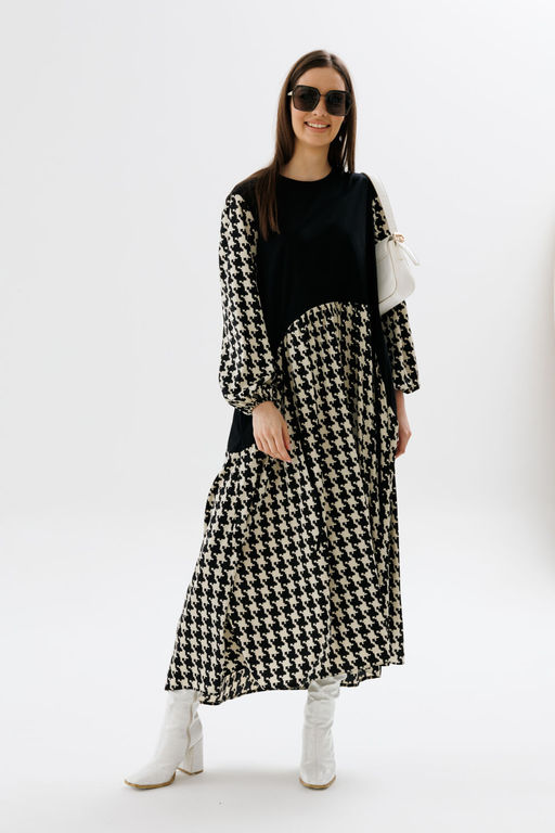 Платье NIKVA н717-2 чёрный+беж гусиная лапка