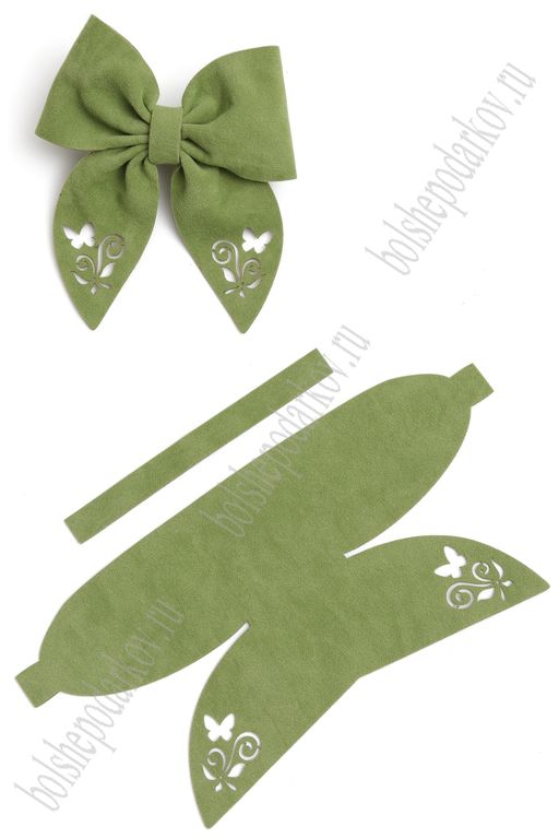 Лазерная вырубка из замши бант "Веточка с бабочкой" 18*9 см (5 шт) фисташковый №83