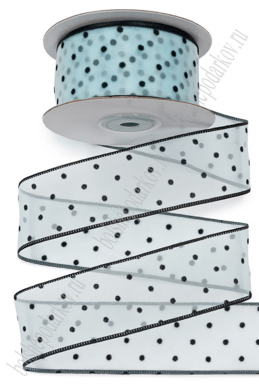 Лента органза 3,8 см*10 ярд "Горошек" SF-7508, голубой
