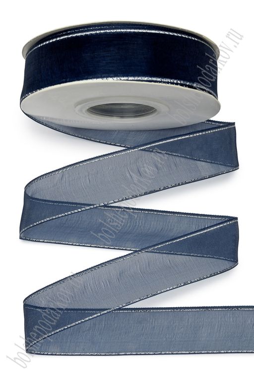 Лента органза с люрексом 2,5 см*50 ярд (SF-7351) темно-синий №ВК19