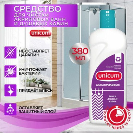 Средство для чистки акриловых ванн и душевых кабин 380 мл UNICUM